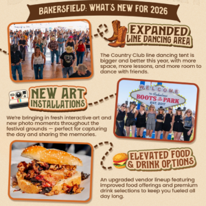 Step into our lively line dancing tent where the music never stops and everyone's welcome! With periodic lessons throughout the day led by an experienced instructor, you'll learn classic moves alongside couples dances and open floor sessions. Whether you're a complete beginner or ready to show off your boots, come join the fun and dance the day away!
